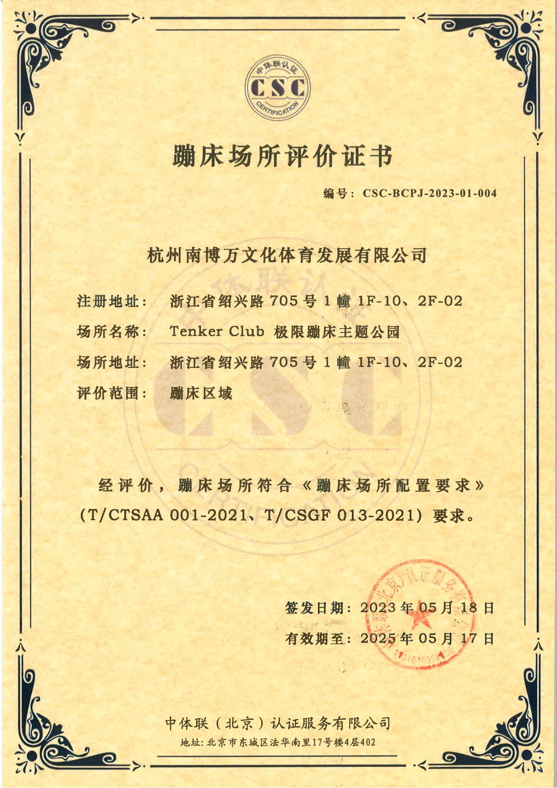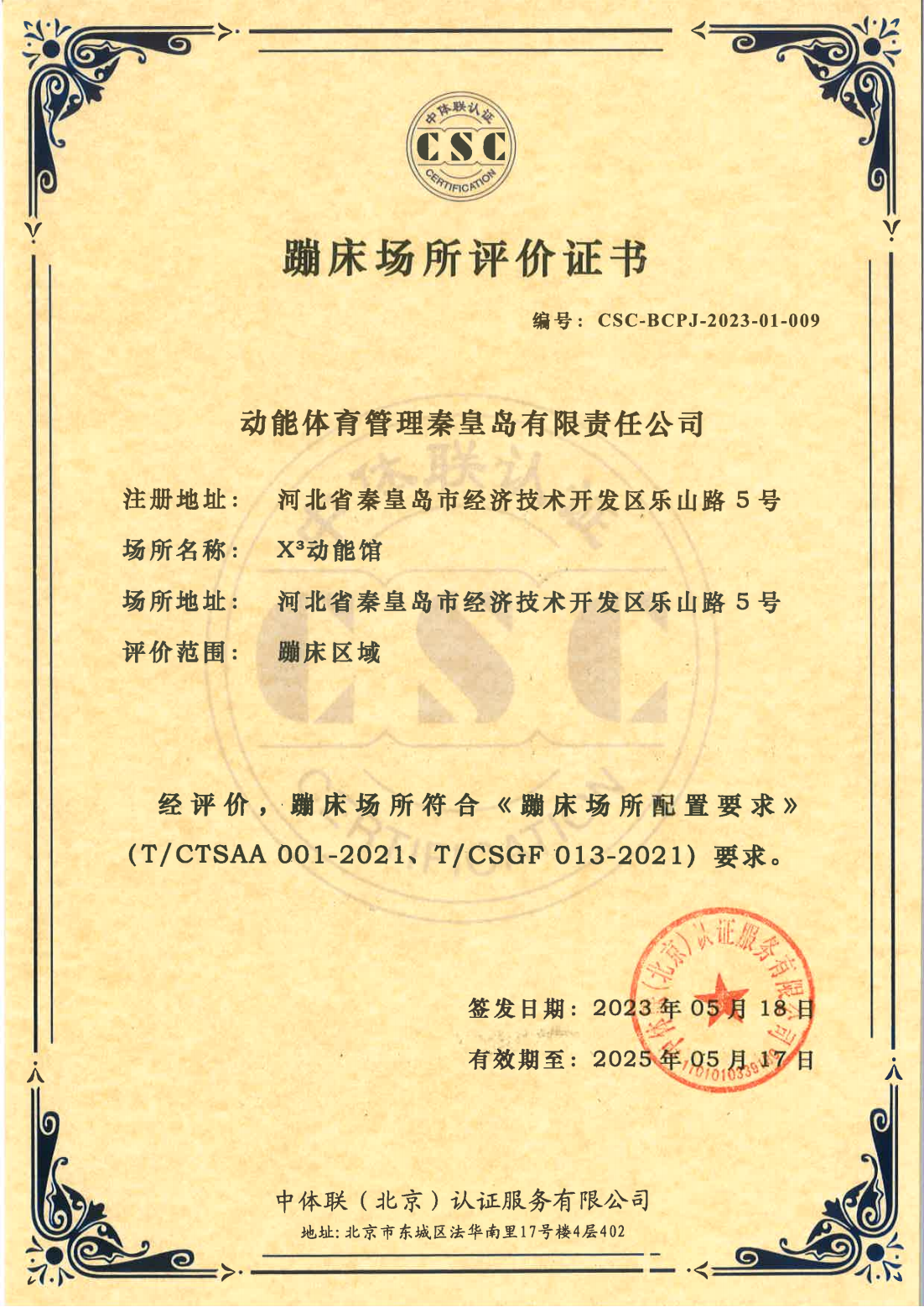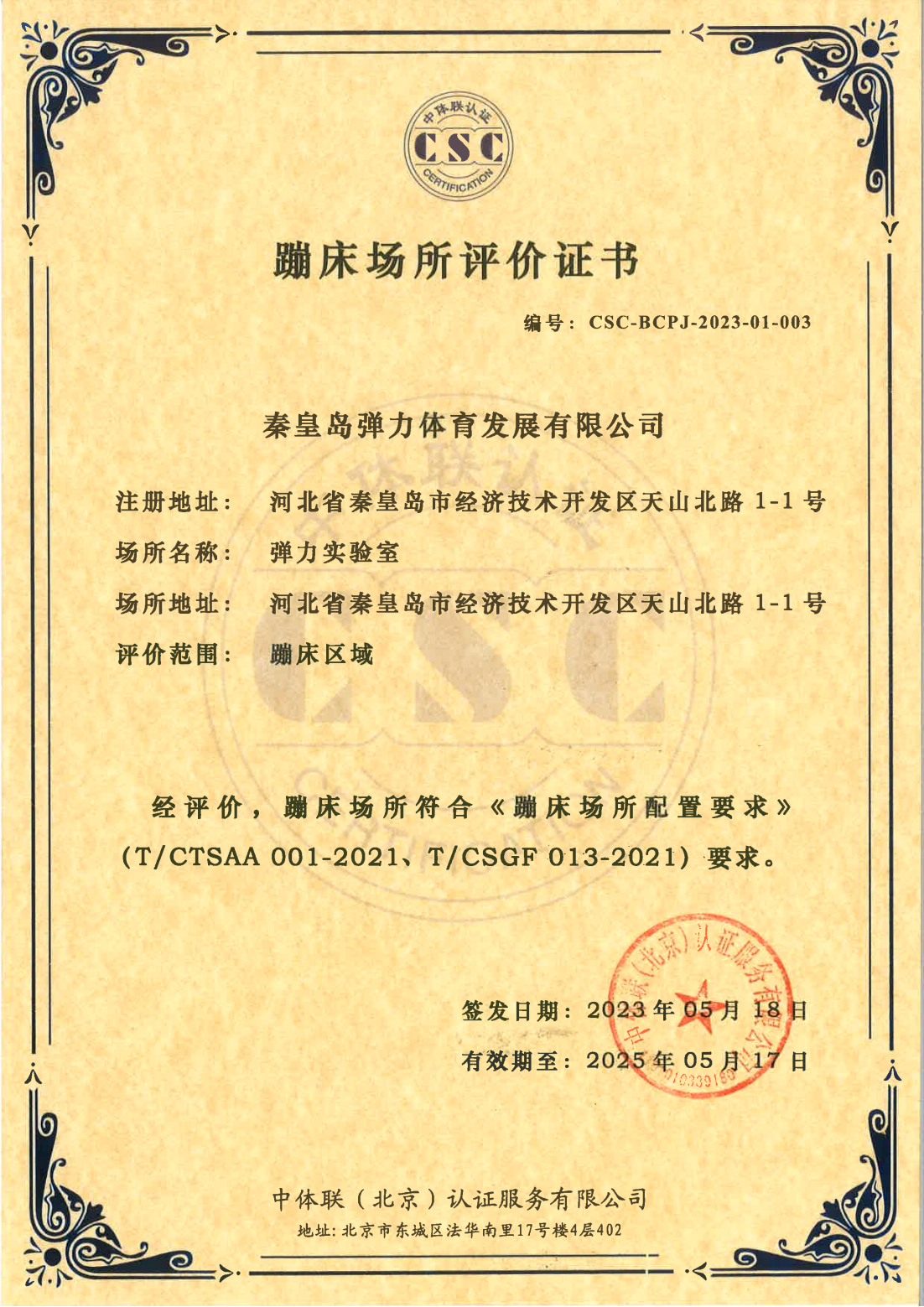 秦皇岛弹力体育发展有限公司 证书详情(点击)