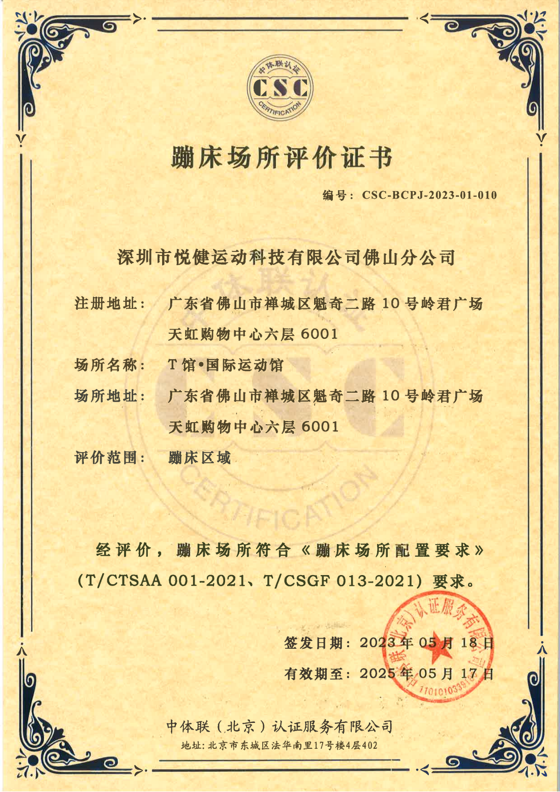 深圳市悦健运动科技有限公司佛山分公司 证书详情(点击)
