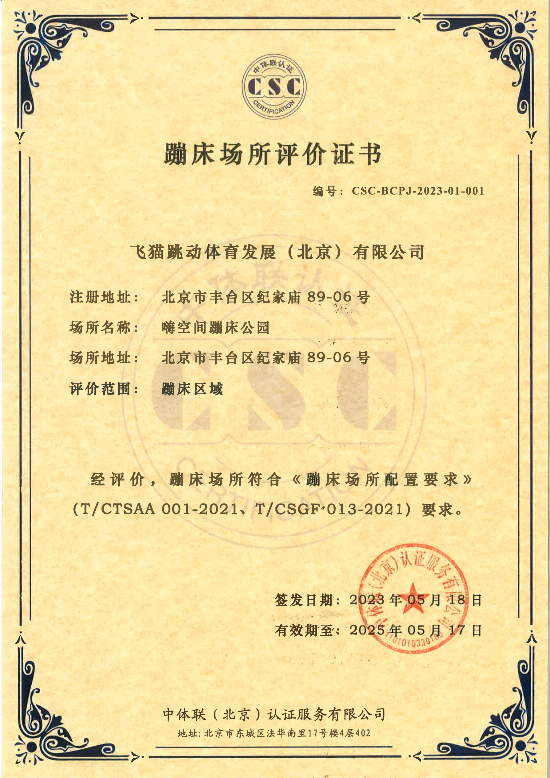 飞猫跳动体育发展(北京)有限公司 证书详情(点击)