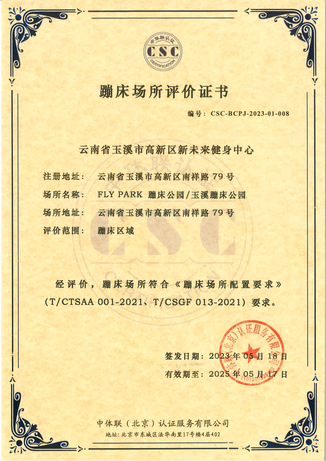 云南玉溪市高新区新未来健身中心   证书详情(点击)