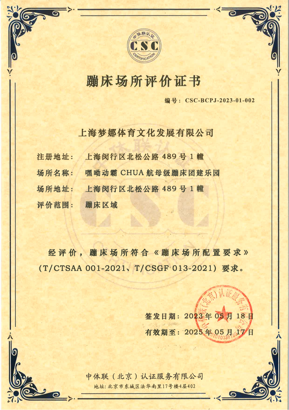 上海梦娜体育文化发展有限公司 证书详情(点击)